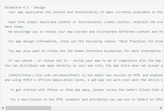 简而言之(zhī),4.3是功能(néng)或者应用程序重复出现在App Store,包括相同(tóng)类(lèi)型产品功能较一致,以及(jí)上(shàng)传马甲或者分包(bāo)导致的被拒(jù)回复。