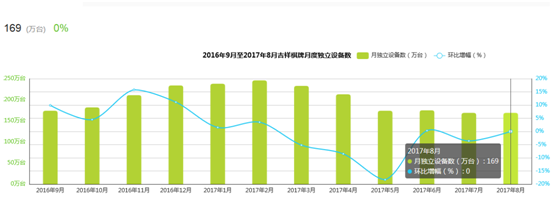《吉祥棋(qí)牌(pái)》月(yuè)度应用设备数