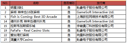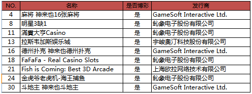 台湾(wān)APP STORE畅销(xiāo)榜前(qián)30中(zhōng)的棋牌博彩类游戏
