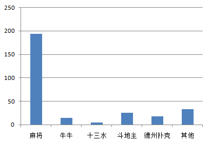 而从棋牌(pái)游戏(xì)的细分类型来看,地方麻将依然(rán)是(shì)独占鳌头,过审数量达193款。其次为斗地主25款,德州(zhōu)扑克17款。有(yǒu)意思(sī)的(de)是(shì)之前据说不能申办版(bǎn)号的(de)牛牛和十三水,在10月份也分(fèn)别有14款和4款过审。其中过审(shěn)的十三水(shuǐ)(十三张)游(yóu)戏分别为(wéi):《同城(chéng)十三水(shuǐ)》、《花色十(shí)三水》、《橘(jú)子十三水》、《方片十三(sān)张》