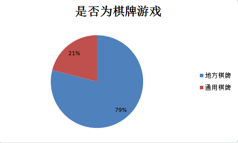 而(ér)从是否为地方棋牌(pái)的分类来看,地方棋(qí)牌依旧(jiù)是目前棋牌市场竞争(zhēng)最激烈的领域。过审的地方棋牌(pái)数量高(gāo)达226款,通用棋牌的(de)数量仅为(wéi)60款(kuǎn),地方棋牌(pái)的占比高达79%。判断是否为地方棋牌的依(yī)据主要是过审棋牌游戏的(de)名称。一般地方棋牌的名称(chēng)前缀都(dōu)带有地名。