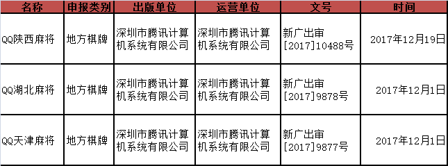 值得注意的是,在(zài)12月腾(téng)讯共有3款地方(fāng)麻将(jiāng)上线。分别为(wéi):QQ陕西麻将、QQ湖(hú)北麻将、QQ天津麻将。