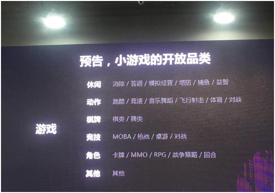据(jù)天辰娱乐了解到的消息,2018年1月15日,微信公开课在广州举行,微信游(yóu)戏产品总监孙(sūn)春光(guāng)为(wéi)大家披露了上(shàng)线以来微(wēi)信小游戏的一系列数据,以及未来即将开放的游戏品类。天辰娱乐曾在1月初发布过(guò)关于微信小游戏专题介绍的文章,各位读者不妨结合起来阅读。(棋牌游(yóu)戏新模式来了?微信小程序上(shàng)线(xiàn)六款(kuǎn)棋牌游戏)