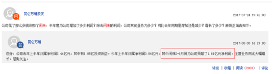 根据2017年7月昆仑万维董秘发布的信息,闲徕互娱2017年2-6月为上市公司贡(gòng)献了1.61亿元净利润。月均贡献净利润在3220万,根据被收购(gòu)的51%的股权比例,基本与2016年被(bèi)收购时的利润持平。