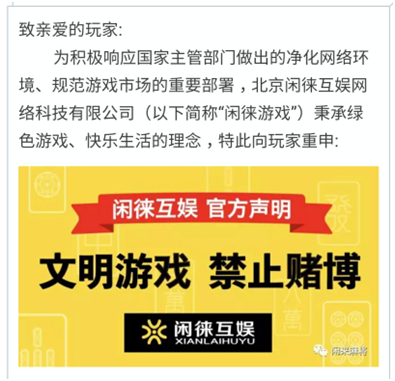 闲来麻将官方声明