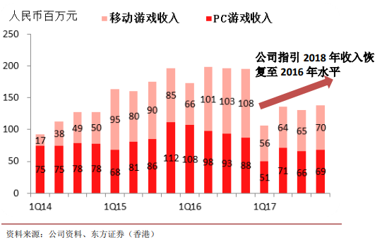 游戏(xì)收入将继续回(huí)升:公(gōng)司指(zhǐ)引 2018 年收入目标恢复至 2016 年(nián)水平