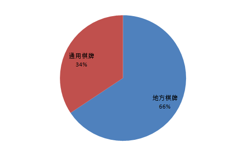 地方棋牌的过审(shěn)数量(liàng),依然占(zhàn)据绝对的优势,达107款(kuǎn),环比下降(jiàng)156款(kuǎn),占过(guò)审棋牌游戏的66%,通用(yòng)型棋(qí)牌的过审数量为56款,占比(bǐ)为(wéi)34%。