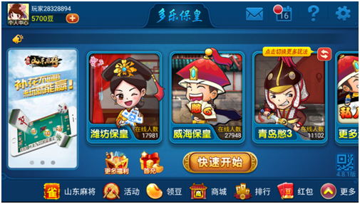 据天辰娱乐体(tǐ)验的情况来看,《多乐保皇(huáng)》以金币售卖(mài)为(wéi)主要盈(yíng)利方式,房卡(kǎ)模式免(miǎn)费,同时在线人(rén)数(shù)在高峰期(qī)能达到10万人,日活在70万左右(yòu)。游(yóu)戏(xì)功能非常完善,囊括了(le)山东境内所有主流“保皇(huáng)”玩法。