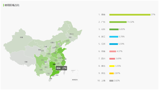 经天辰娱乐调研,“地方牌类(lèi)”游戏相较于(yú)“地方(fāng)麻将”有一个最大的特征:地方属性更强(qiáng),用户粘(zhān)性(xìng)更高,更能在(zài)当地形成口碑效应。还是以《多乐保皇》和《闲来麻将》做横(héng)向对比。《多乐保皇(huáng)》的玩家地域分布(bù)最(zuì)多的是山东地(dì)区,占比(bǐ)44%,而(ér)《闲来(lái)麻将》的玩家地域(yù)分布(bù)最多的是湖(hú)南地(dì)区,占比仅为27%。