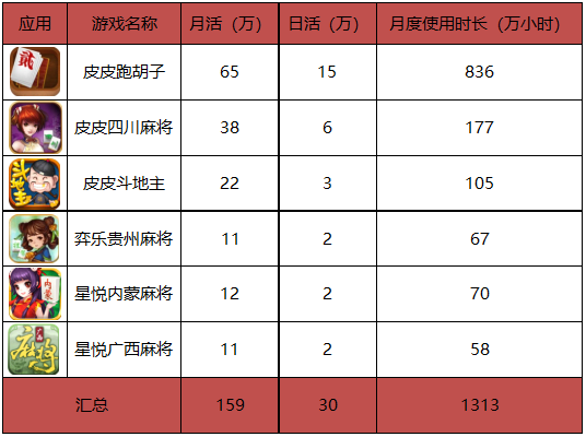 微乐游戏旗(qí)下产(chǎn)品运营数据