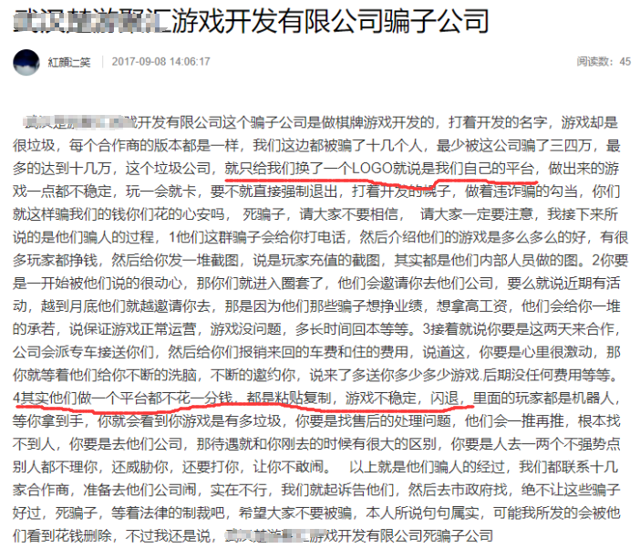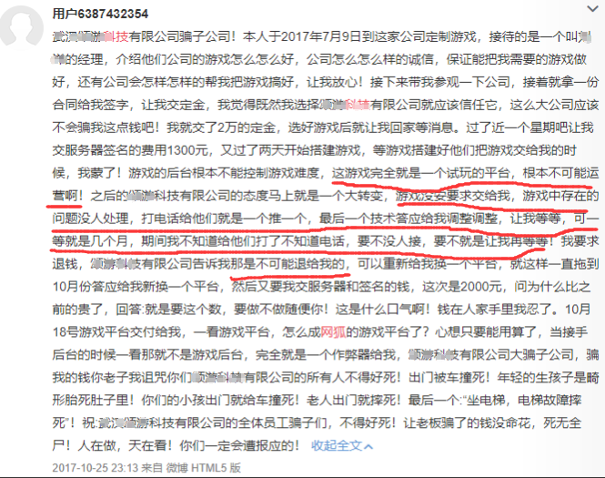 这样的产品和(hé)服务质(zhì)量可想而知。一旦上线运营,各种问题就(jiù)都会暴露出来。这些小团队,本身没有平台开发能力,也没有解决问题的能力,引发纠纷也就不可避免了。甚至不少创业者在(zài)花费数十万血本无归(guī)后,只能选择(zé)在(zài)微博上(shàng)爆料。