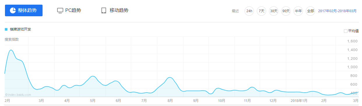 棋牌游(yóu)戏开发(fā)的(de)百度指数持续走低