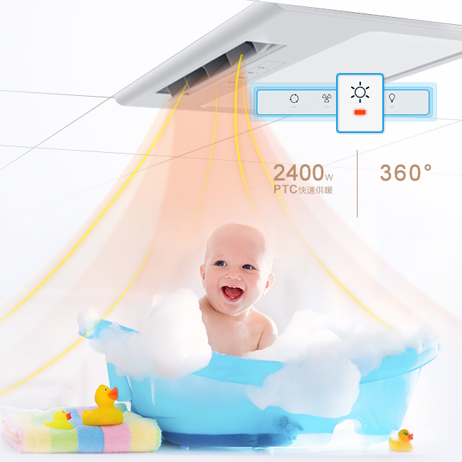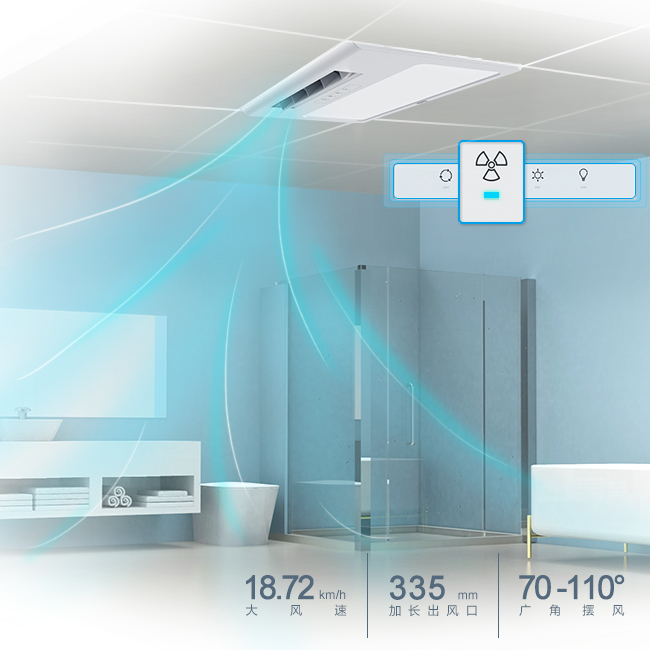 強(qiáng)勁送暖,均勻布溫,浴室溫度快速上升